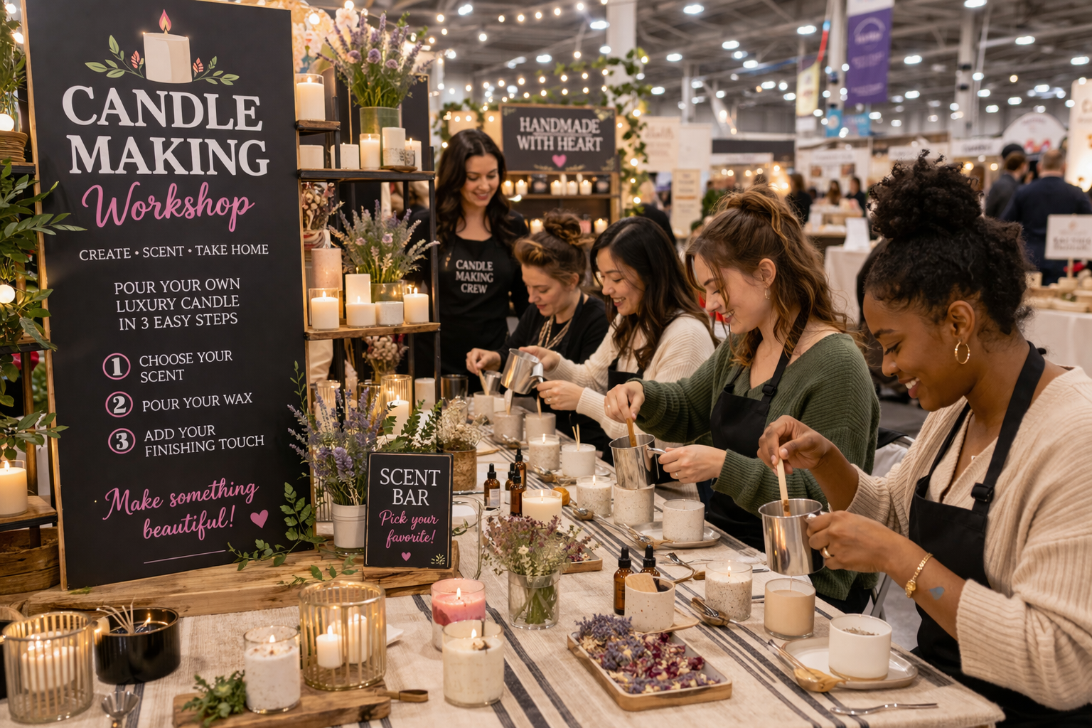 Unleash your inner creativity and take part in over 25 Different DIY Pavilions and Workshops spread throughout the Convention Center and an amazing variety of Free Make-N-Take Classes!